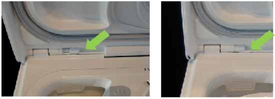 - Een mogelijke oorzaak van deze fout is dat een van de twee pennen is losgeraakt in het dekselscharnier.