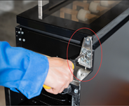 Bevestig het onderste scharnier opnieuw en draai de 4 schroeven vast.