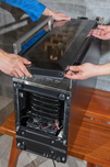 Verwijder de deur voorzichtig en vervang deze door een nieuwe glazen deur.